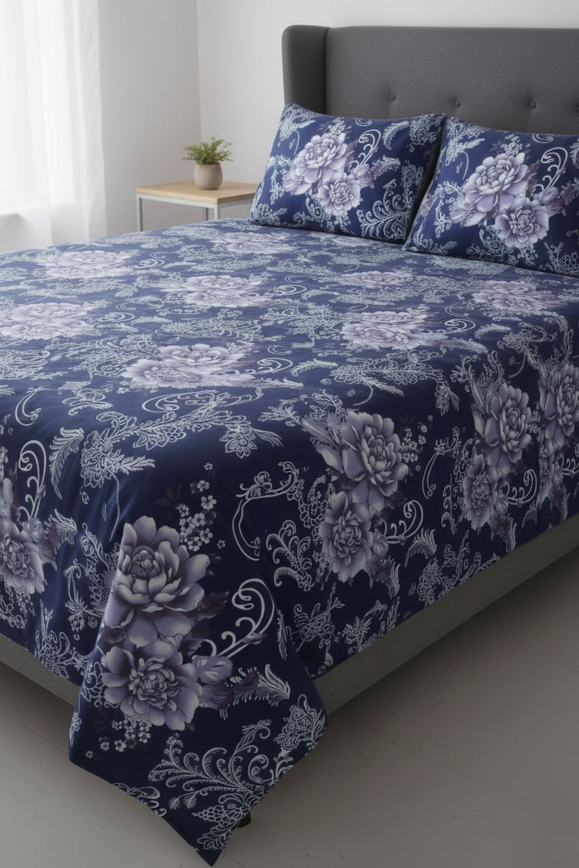 - Experience ultimate comfort with our Dark Blue Crystal Fabric Bed Sheet.